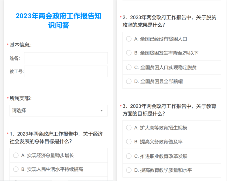为了促进教师们对于两会政府工作报告的深入理解,4月3日,英国正版365首页举行了一场知识问答活动,活动采用了便捷高效的问卷星形式,并向学院的教师们发放了问卷。