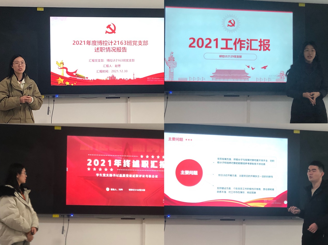 为深入学习贯彻落实党的十九大和十九届六中全会精神,进一步加强学生党支部党建工作,提升党支部书记履职能力,按照大学《关于开展2021年度党支部书记述职评议考核工作的通知》要求,12月30日英国正版365首页在主楼E563召开学生党支部书记基层党建述职评议考核会议。学院党委副书记耿晔、组织员董宏伟、辅导员王志楠、李栋栋、李哲雅出席会议并担任评委。