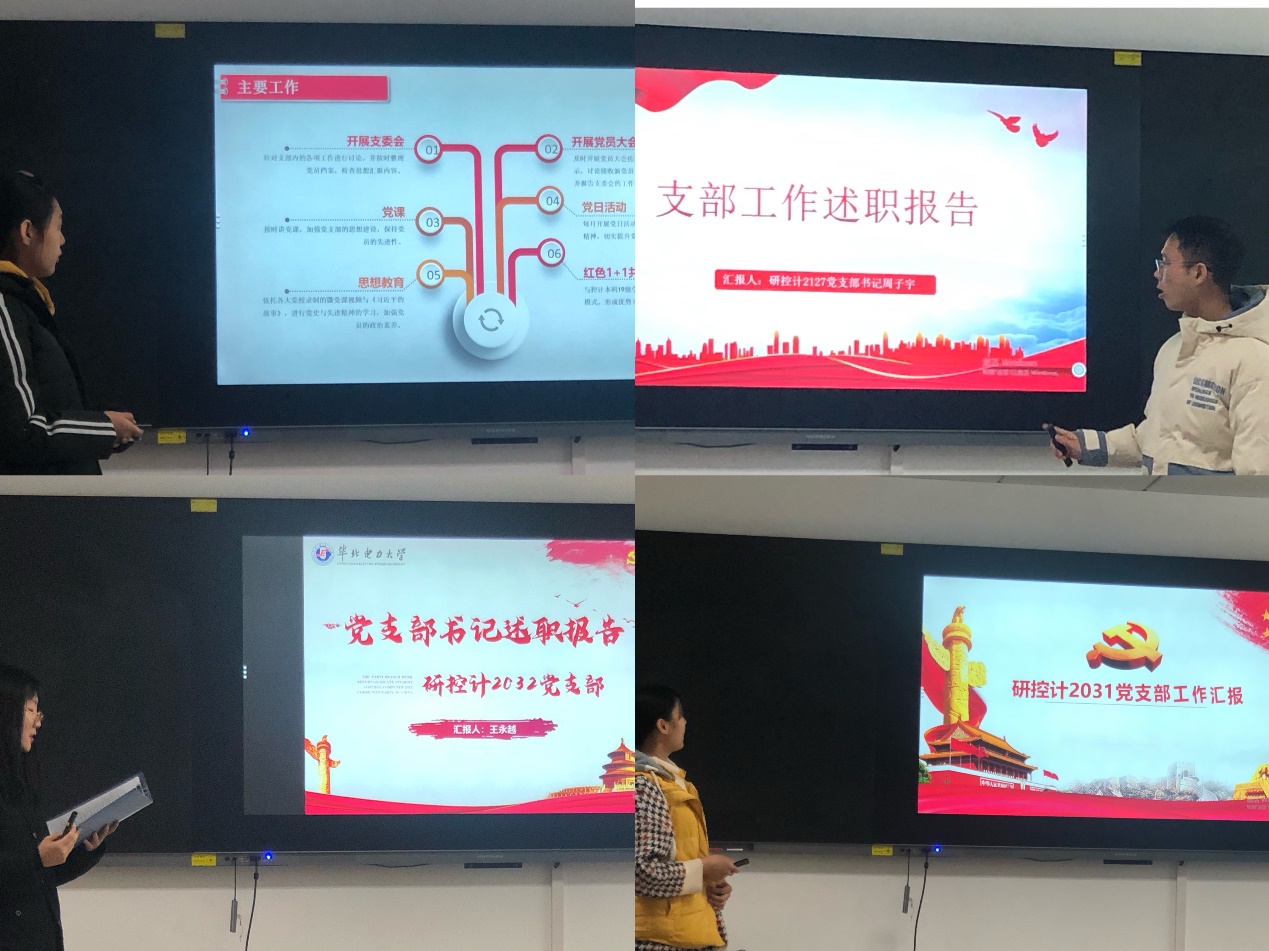 学院28位学生党支部书记逐一阐述本支部本年度工作概况,重点从支部基本情况、履职主要情况、存在的主要问题及原因、下一步工作思路和主要措施四个方面进行述职汇报。评委们依照考核流程进行民主测评,根据支部政治功能发挥情况、党内政治生活“三会一课”执行情况、党支部规范化建设情况、党员发展教育管理情况、党支部在工作开展中的特色创新这五点对每一位支部书记进行了打分,并结合党支部工作手册的完成情况等方面对支部书记履职尽责情况进行现场点评。