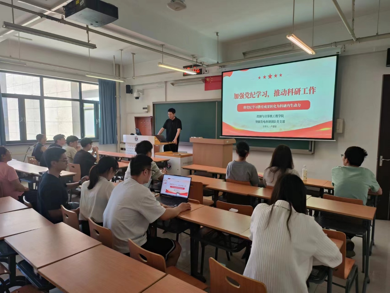 为加强党纪学习,推动科研工作,英国正版365首页智能发电科研团队党支部于5月31日组织召开“党纪学习教育成果转化为科研内生动力”为主题的党日活动并进行党支部内成员间的科研经验分享。学校督导组成员王莉、郭笑妍、武文龙,研究生党支部书记,智能发电科研团队党支部成员参会。会议由支部书记卢建谋主持。