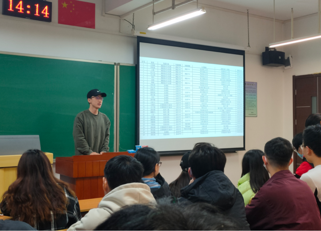 王家文同学结合自己保研北京大学的经历向大家分享了自己的心路历程,表明保研的过程也是不断积累信心的过程,要找准自己的定位,补好短板,保持优异的成绩是进入夏令营的关键,选择学校的时候也要具体学校具体分析。他鼓励处于保研边缘的同学不要气馁,根据竞赛表参与大创等竞赛项目为自己赢得加分同样可以达到保研的标准。