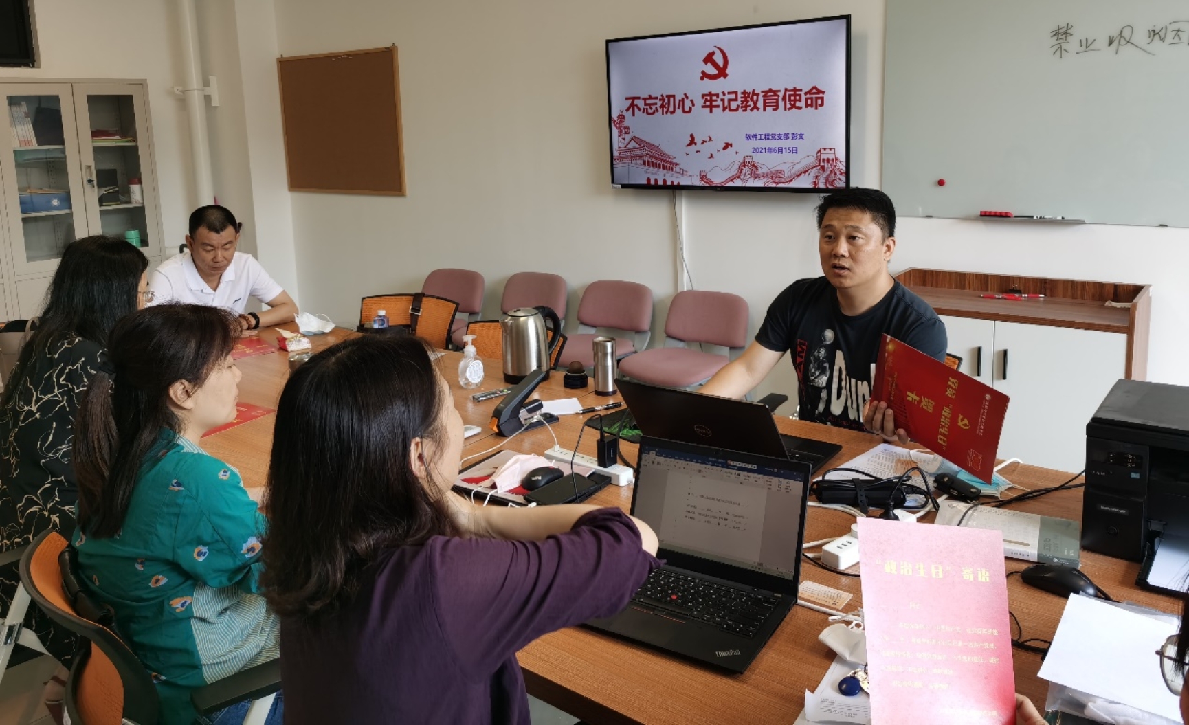 2021年6月15日,软件工程党支部在主楼E711A开展支部书记讲党课活动,支部书记彭文同志做关于《不忘初心,牢记教育使命》的报告,支部全体党员听取了此次党课。彭文同志从当前社会环境下教师遇到的种种问题出发,引出了大家从事教师行业的初心和使命。党课主要分为三个部分:什么是党的“初心”和“使命”、什么是教育的“初心”和“使命”、“教育使命”提出的新要求。