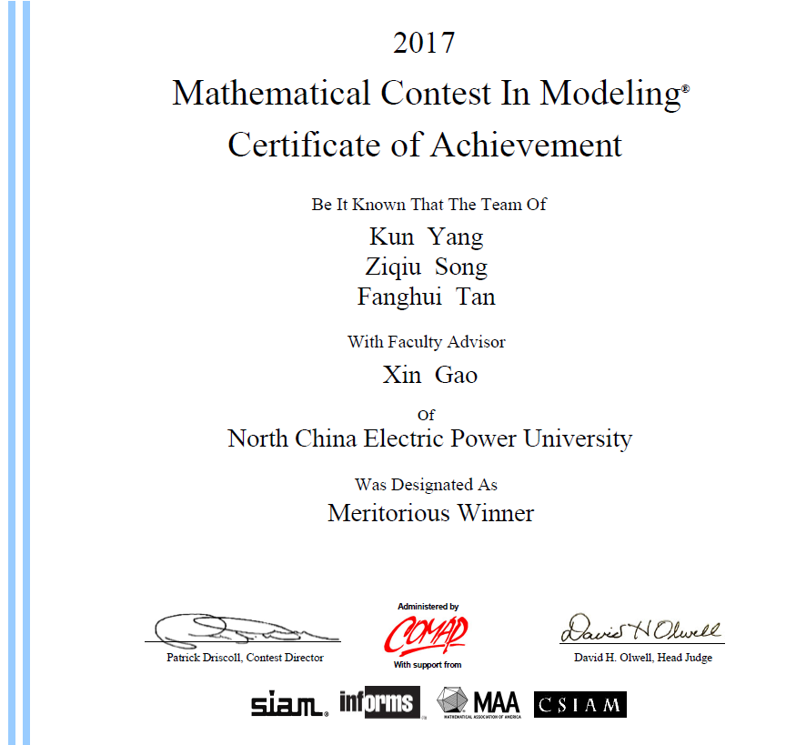 高教社杯全国大学生数学建模竞赛北京市一等奖
