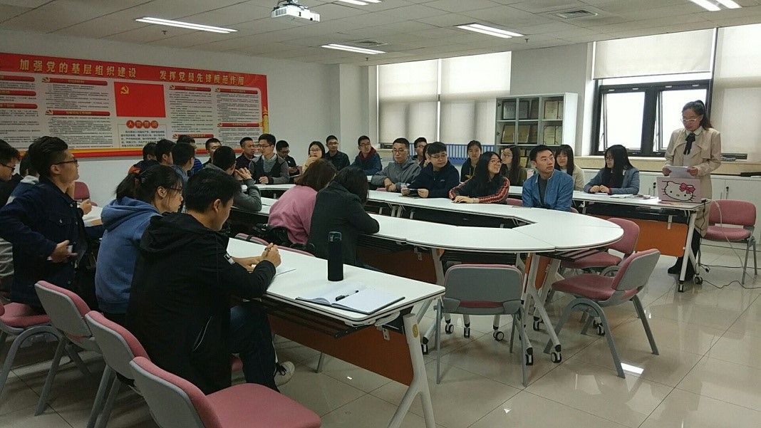 10月20日上午9:00,在学院党员活动之家,研控计1624党支部班与研控计1626党支部联系组织开展了以”心系十九大、筑梦新征程”为主题的党日活动。研控计1626班班主任薛明磊、支部党员、部分入党积极分子共计40余人参加了活动。