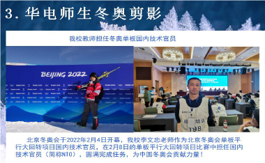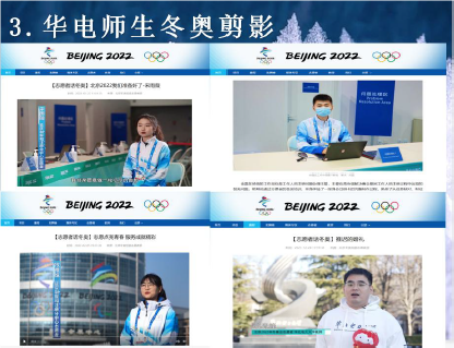 研控计1920的团支书带领同学们回顾了华电师生在本次冬奥剪影,我校的冬奥志愿者也多次被奥组委官方网站报道。有对上传数据心中有数,细心和耐心完成工作的研外 2054 班宋雨薇;也有所带领的小组共同开发了注册信息审核,提升了审核的效率的研经管 2033 班徐磊;同样有为了能全身心投入志愿工作,推迟了自己的婚礼的“冬奥志愿者专项工作办公室联络员”动力系辅导员谷青峰。他们奉献着自己,认真完成各个方面的工作,用最饱满的热情服务于冬奥的舞台。