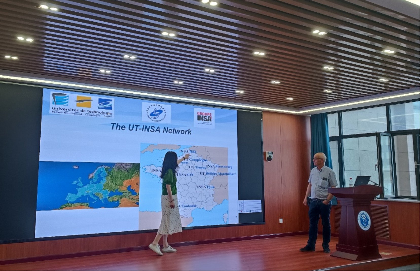 UT-INSA由法国十所工程师大学组成,直属法国高等教育科研创新部,授予法国工程师,硕士和博士学位,是法国著名的五年制精英大学(大学校)。滕婧老师简要翻译介绍了UT-INSA的地理位置以及周边环境。