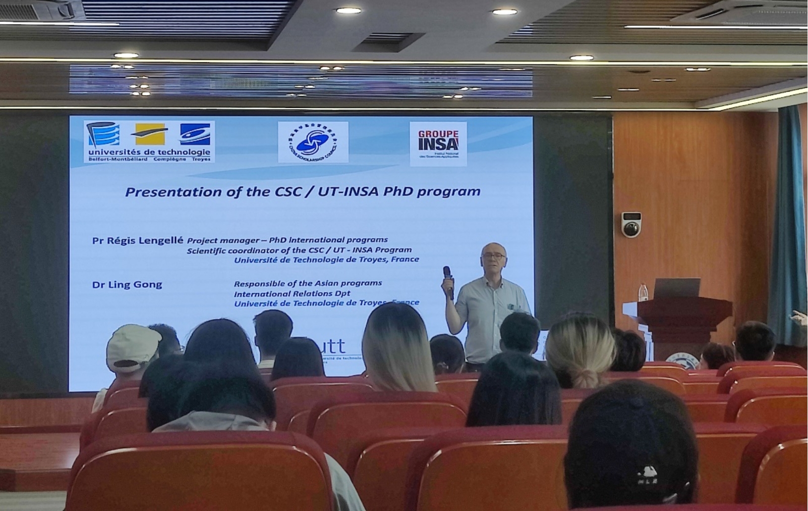 Régis LENGELLE教授重点介绍了CSC/UT-INSA博士项目的申请要求与联系方式,并现场演示如何查看报名信息,最后强调了填写报名表的相关注意事项。