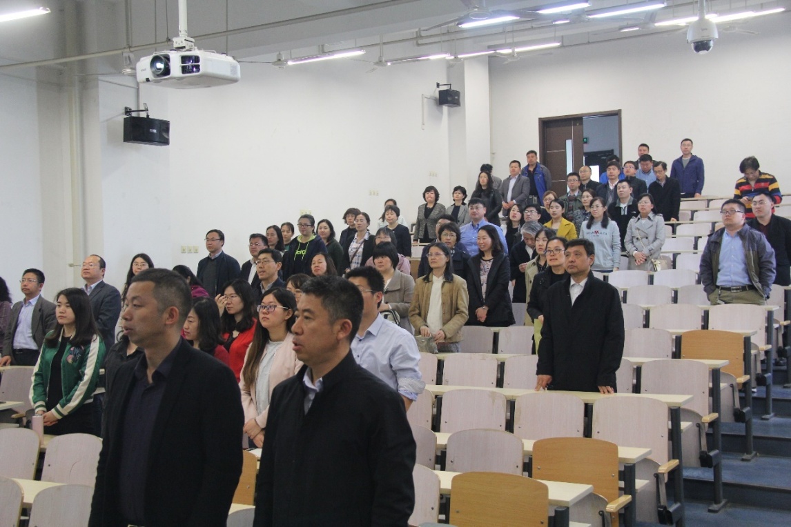 2019年4月16日星期二下午12:40,英国正版365首页在主E101召开2019年教职工大会学院班子述职及测评大会。全院百余名教师出席大会。会议由学院党委副书记丁文俊主持。校工会常务副主席林长强莅临指导。