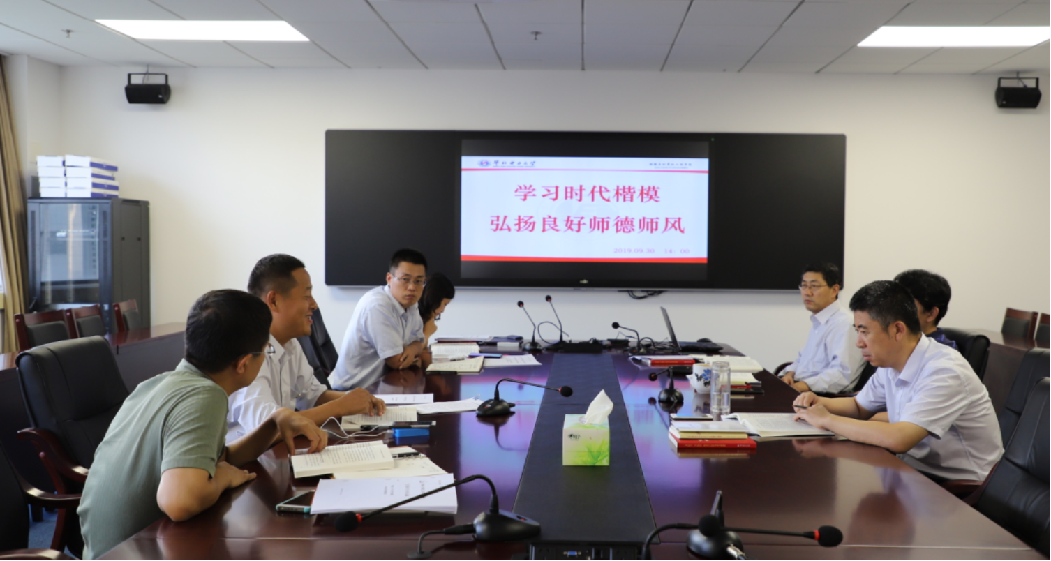 为弘扬守正奉献的优良作风,办好人民满意的教育,英国正版365首页党委理论中心组于9月30日下午在主楼E座633房间开展“不忘初心,牢记使命”主题教育集中研学,主题为“学习时代楷模,弘扬良好师德师风”。
