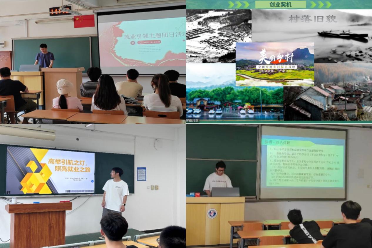 坚持党建引领团建赋能,凝聚青春力量。学院党委坚持党建带团建,团建促党建原则,组织带领团委及各团支部开展“高举引航之灯,照亮就业之路”主题团日活动,分别以乡村振兴、青年担当、就业实践等为主题进行宣讲。广大团员青年在活动中感受时代变迁,坚定听党话、跟党走的政治信念,立志以强国有我的青春激情在强国建设、民族复兴伟业中奋勇前行。