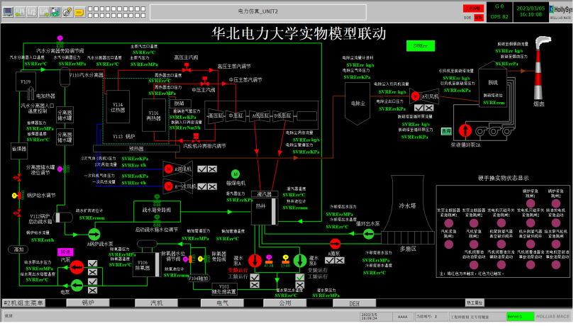 2023年3月13日,英国正版365首页1000MW超超临界火电机组半实物仿真实验平台完成了调试和开放测试,现已正式投入使用。该平台部署在英国正版365首页主楼E116房间,占地面积为500余平方米。