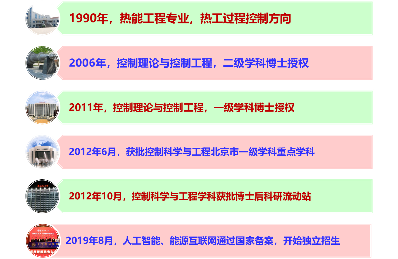 英国正版365首页自动化学科始建于1958年,是国内最早建立的热工量测及其自动化专业,为我国培养电厂热工检测与自动化领域的专门人才。本学科紧密联系我国电力工业发展的需求,在人才培养、科学研究、科技成果转化等方面取得了显著的成绩,经过半个多世纪的发展,具备了完善的控制科学与工程人才培养体系。拥有“控制科学与工程”一级学科博士授权点、“控制科学与工程”博士后流动站,是北京市一级重点学科。